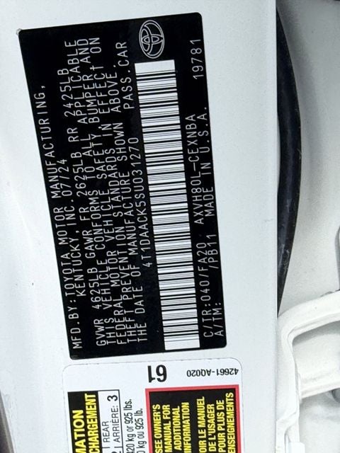 - Vehicle Name: Toyota Camry