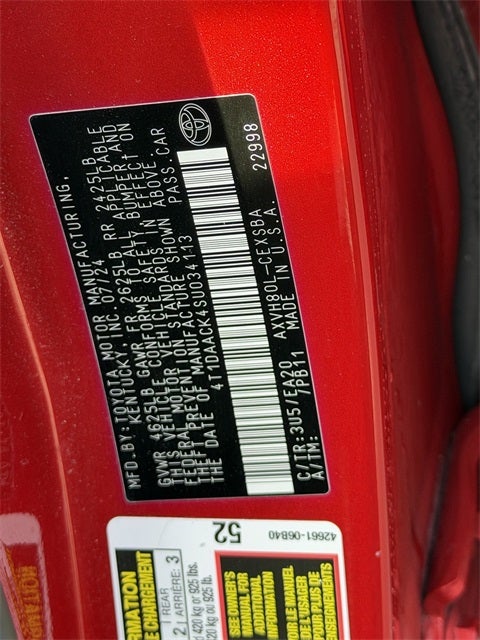 - Radio: Toyota Audio Multimedia w/8" Touchscreen -inc: USB-A media port, hands-free phone capability and music streaming via Bluetooth® wireless technology, SiriusXM 3-month trial subscription, 6-speaker audio system, wireless Apple CarPlay compatibility and wireless Android Auto compatibility