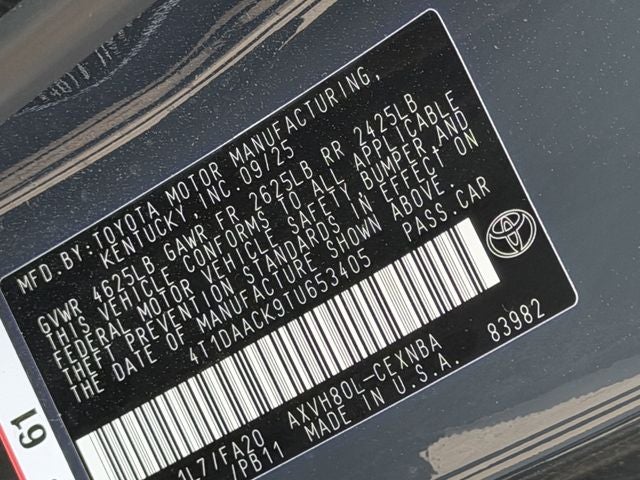 - Vehicle Name: Toyota Camry